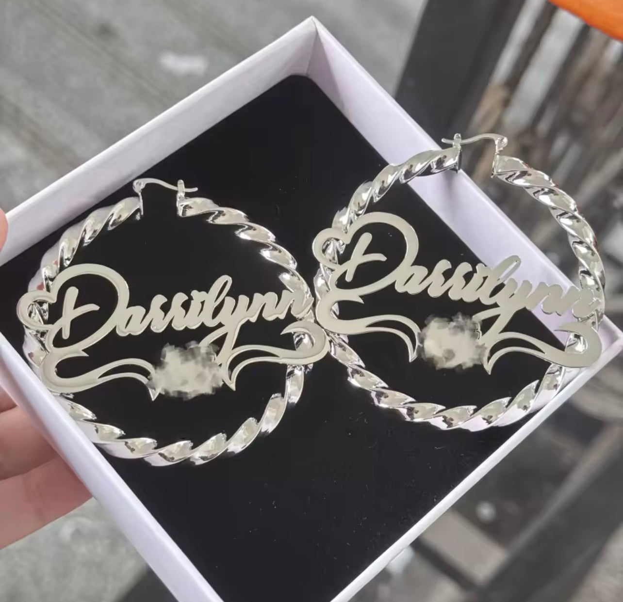 Hk name earrings